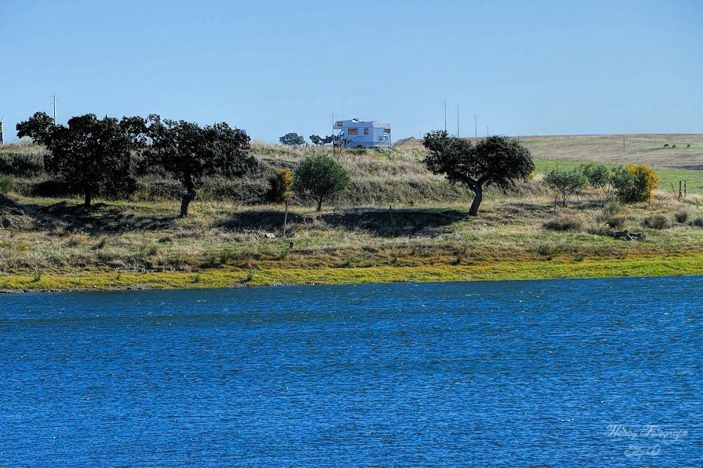 De camper houd de wind tegen en dan is het goed uit te houden