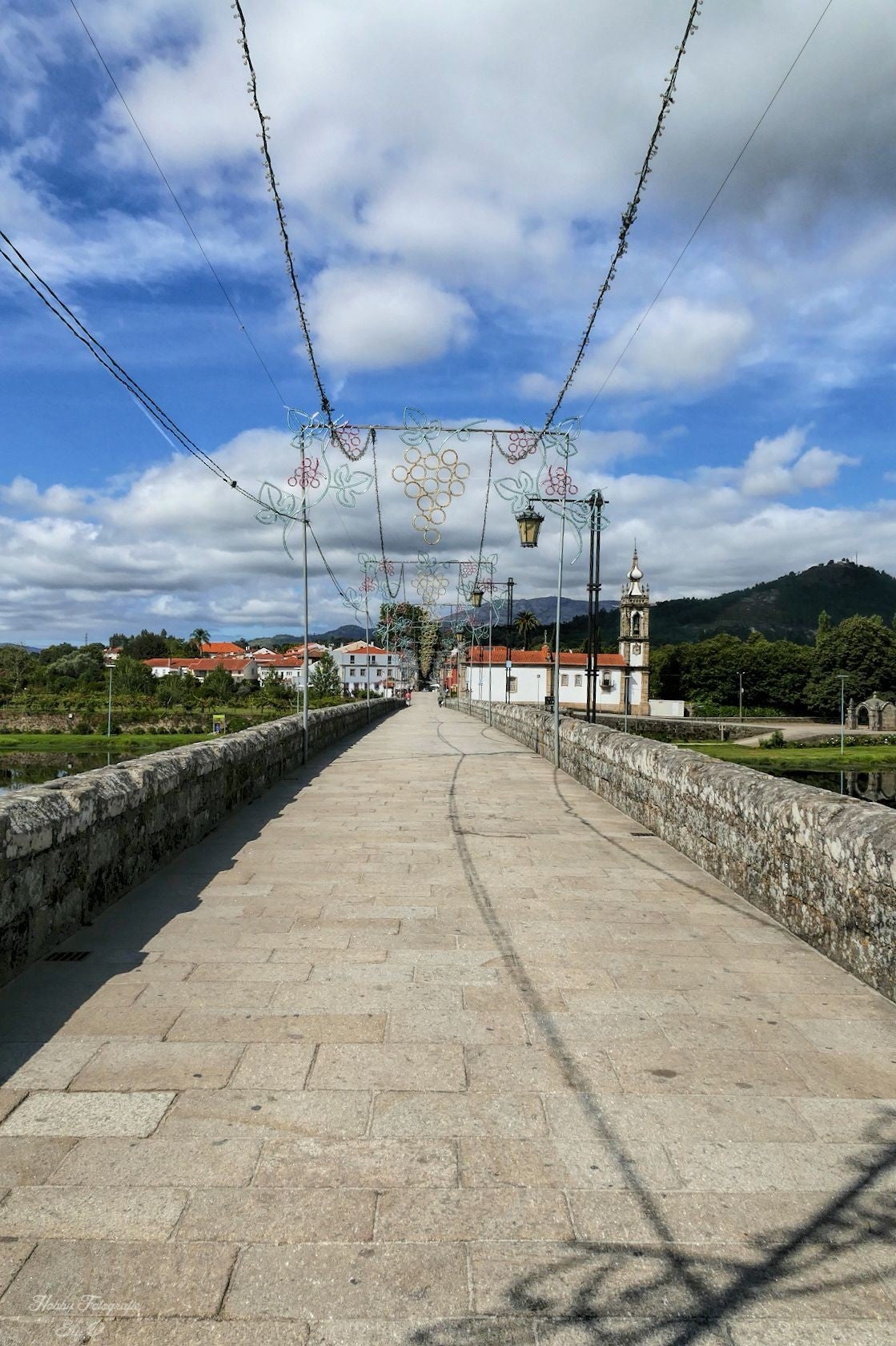 En we verlaten Ponte de Lima via een andere brug over de Lima en zien de brug mooi liggen, we gaan nu naar een camping, wat noordelijker ,weer de hoogte in en het is dus weer klimwerk...In de diepte zie je de Lima liggen