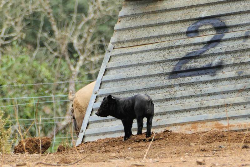 Toen we over de stuwdam reden zag ik ze al rennen beneden bij de boerderij ...de biggetjes van het zwarte varken..komen voornamelijk in de Alentejo voor...deze beesten hebben een goed leven ,wat een ruimte , allemaal hun eigen hok ....dit is bio!!!