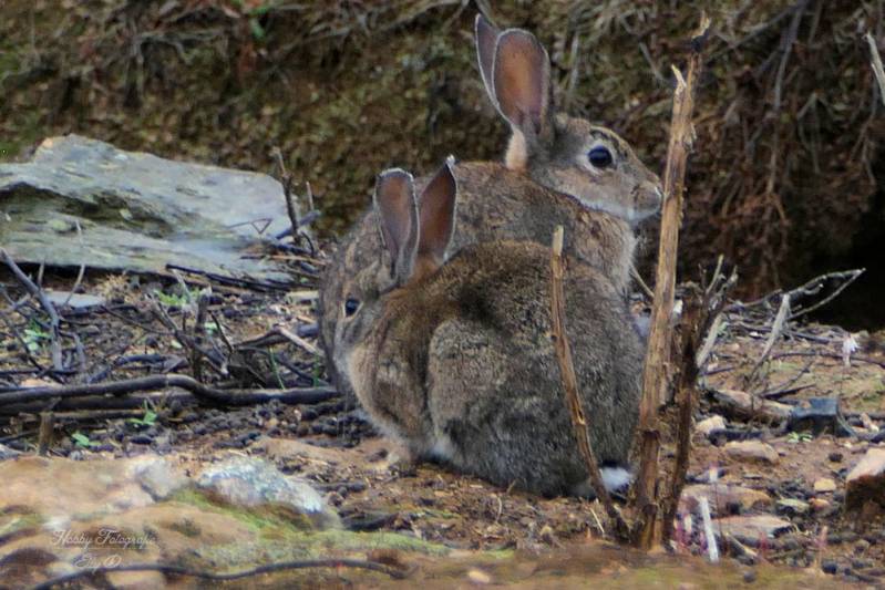kurkeik stukje van de boom kiekeboe veel konijnen op het terrein