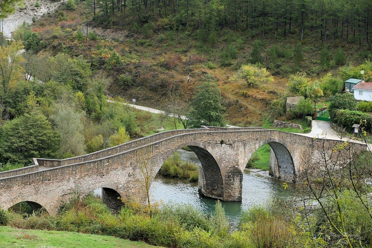 Het zijn de Pyreneën en je blijft klimmen ook in zo`n dorp...heel veel is er niet te zien ...de Romeinse brug er is een mooie oude kerk