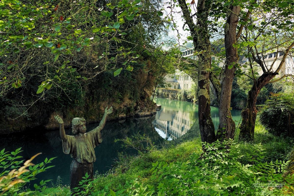 En na een lange afdaling die stijl is komen we beneden bij het klooster en de beroemde oude brug waar de legende van het meisje vandaan komt .