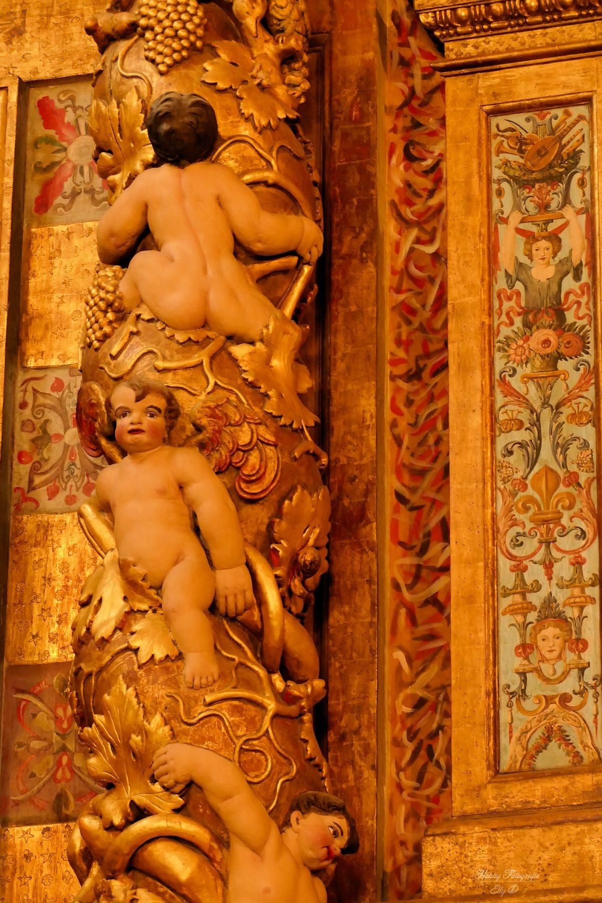 Overal rond het altaar zie je engelen het klapstuk is het Mariabeeld met Jezus